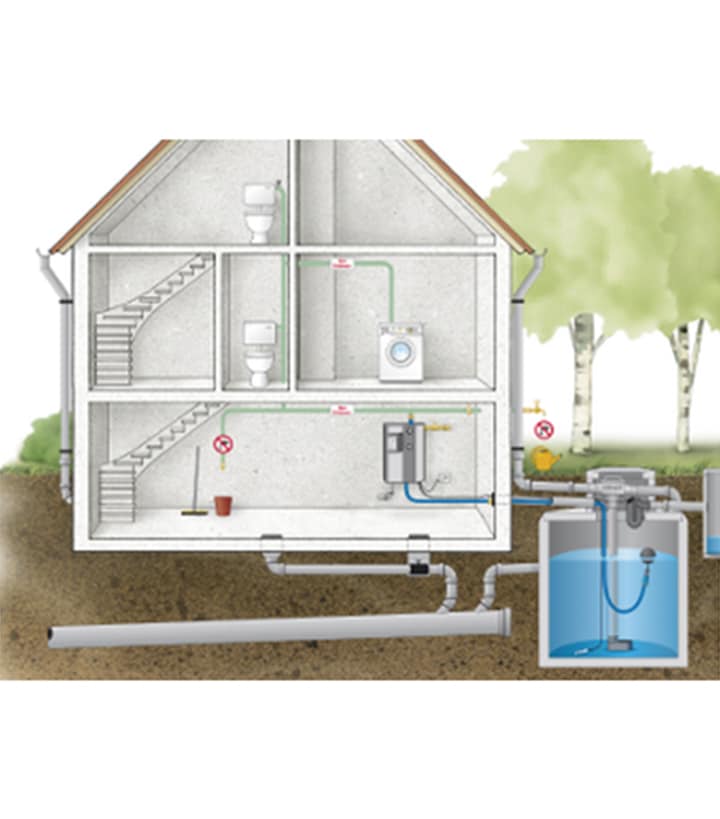 Grâce à l’installation d’une pompe à eau de pluie, l’eau de pluie que vous récoltez est emmagasinée dans un réservoir souterrain (une citerne ou un puits). La pompe exploite alors cette réserve comme ‘source’ et distribue l’eau via un circuit indépendant. D’ailleurs, en Belgique, ces pompes à eau de pluie sont désormais obligatoires dans les nouvelles constructions.